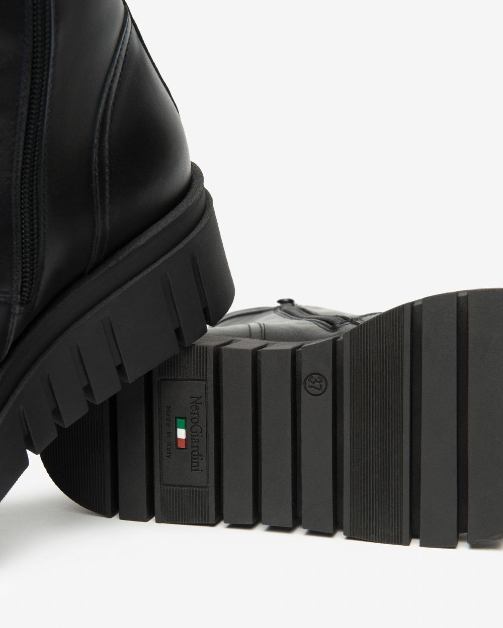 Stivaletti NeroGiardini, personalità e stile unico. Le calzature NeroGiardini sono realizzate in Italia, utilizzando materiali di qualità e le più avanzate tecniche di lavorazione. Ogni scarpa è il risultato della esperta competenza artigiana tramandata di generazione in generazione. Tutti i modelli sono progettati per offrire comodità e versatilità in ogni momento della giornata, dal lavoro alla serata speciale. Il reparto stile NeroGiardini è costantemente alla ricerca di nuove tendenze per offrire calzature sempre attuali e originali. NeroGiardini propone anche una collezione di borse, perfettamente abbinabili alle calzature, per un total look Made in Italy impeccabile.La produzione Made in Italy delle calzature NeroGiardini è sottolineata dal tricolore impresso sulle suole e sul packaging.