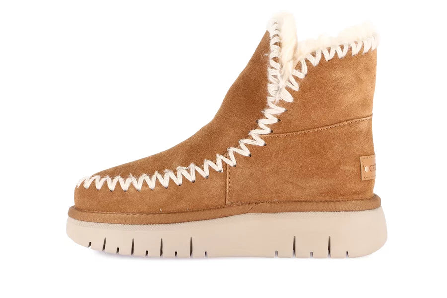Tronchetto realizzato in pelle scamosciata ed eco pelliccia interna. Il nuovo modello CHOT coccola i tuoi piedi nelle giornate più fredde. Lo amerai per la suola voluminosa e le cuciture in evidenza.